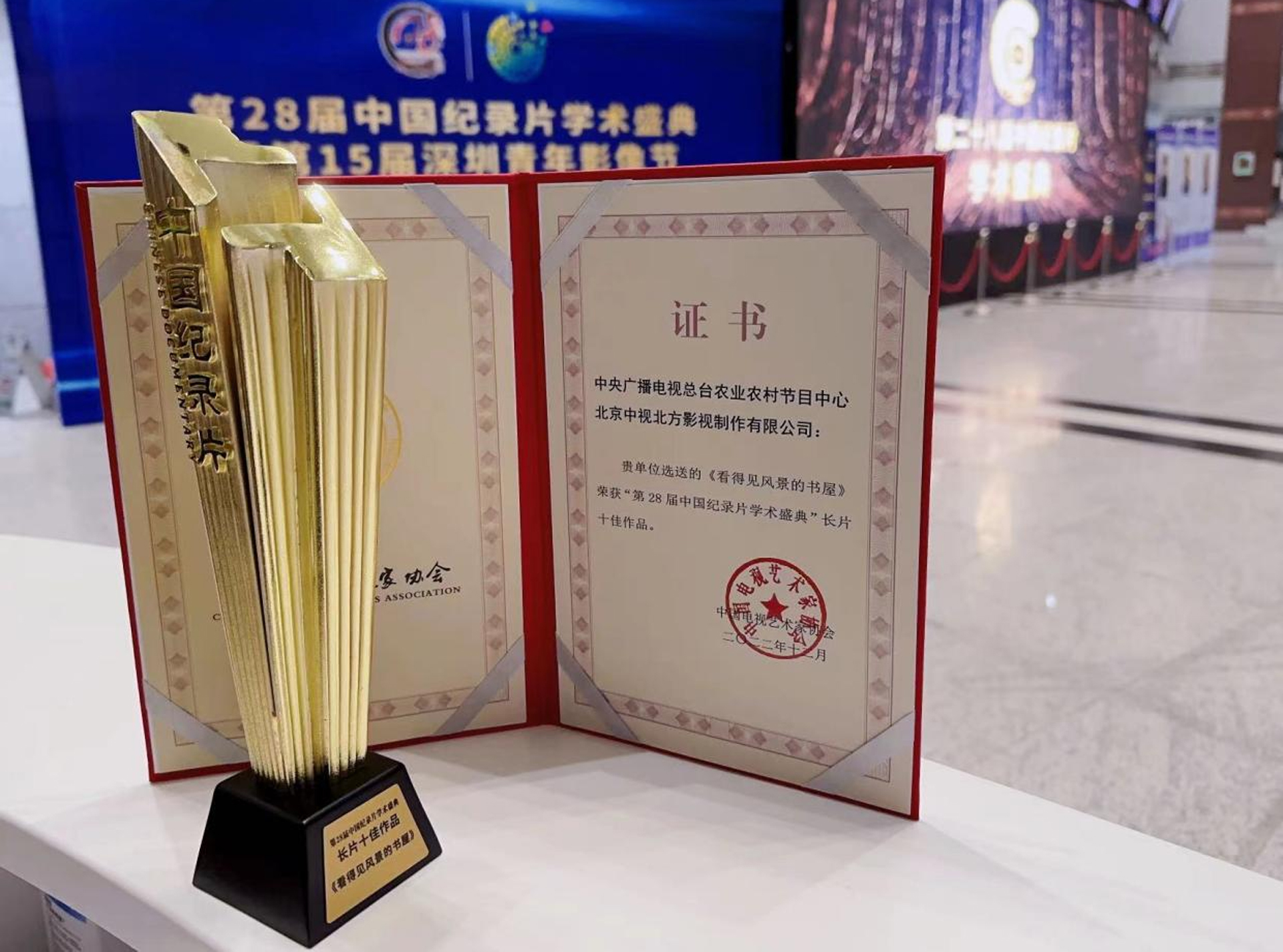 2022年(nian)12月31日(ri),中(zhong)視北方(fang)選送的(de)《看得見風景的(de)書屋》榮獲中(zhong)國(guo)電(dian)視藝術(shù)傢(jia)協會授(shou)予的(de)“第28屆中(zhong)國(guo)紀錄片學(xué)術(shù)盛(sheng)典”長(zhang)片十佳作(zuò)品(pin)。