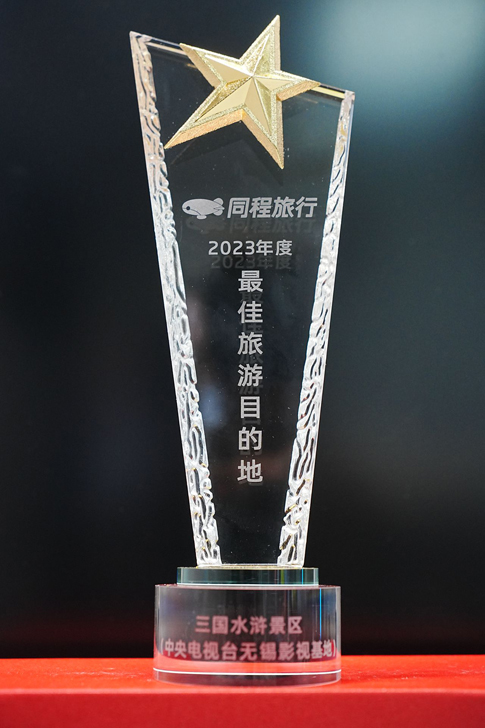 2024年(nian)1月4日(ri),無錫影視基地三國(guo)水浒景區(qu)榮獲同程(cheng)旅行2023年(nian)度“最佳旅遊目(mu)的(de)地”獎牌。