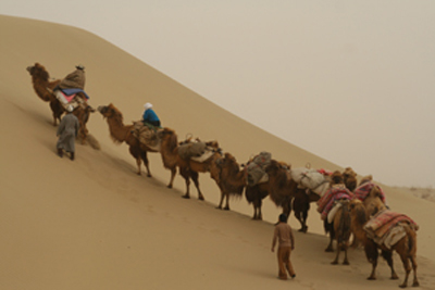攝製(zhi)組在(zai)新(xin)疆沙漠中(zhong)進(jin)行艱苦拍攝